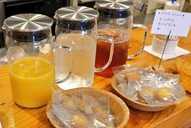 セルフサービスのドリンクやお菓子も用意しています。お好きなタイミングでご自由にお召し上がりください!