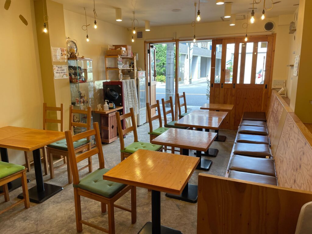 〈対面営業〉店内は3〜4人ずつのテーブルに分かれています。